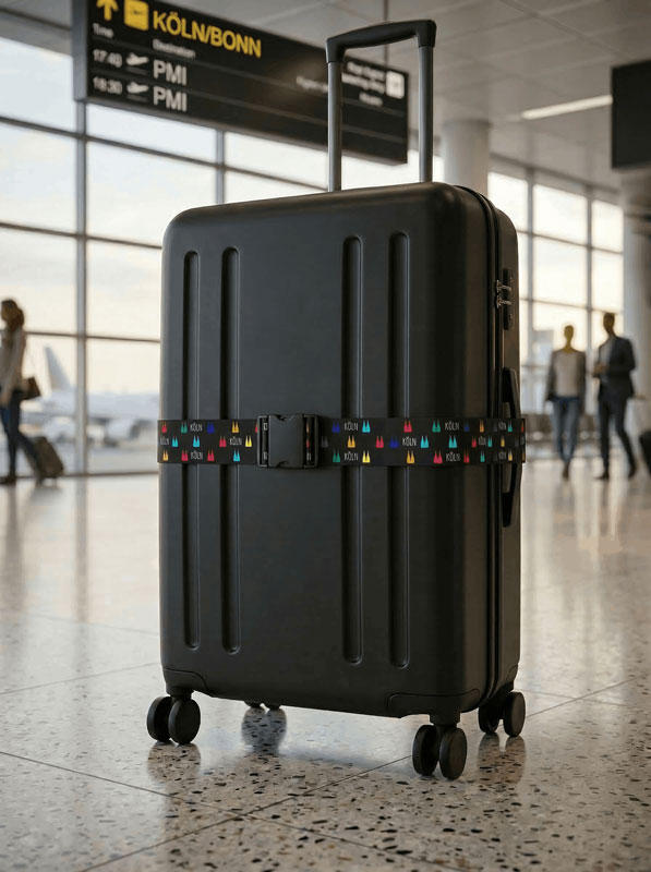Dieser farbenfrohe Koffergurt mit den beliebten bunten Dömchen ist der perfekte Begleiter für jede Reise. Das lebendige Köln-Design macht Ihren Koffer sofort erkennbar und sorgt gleichzeitig für einen sicheren Halt beim Transport.